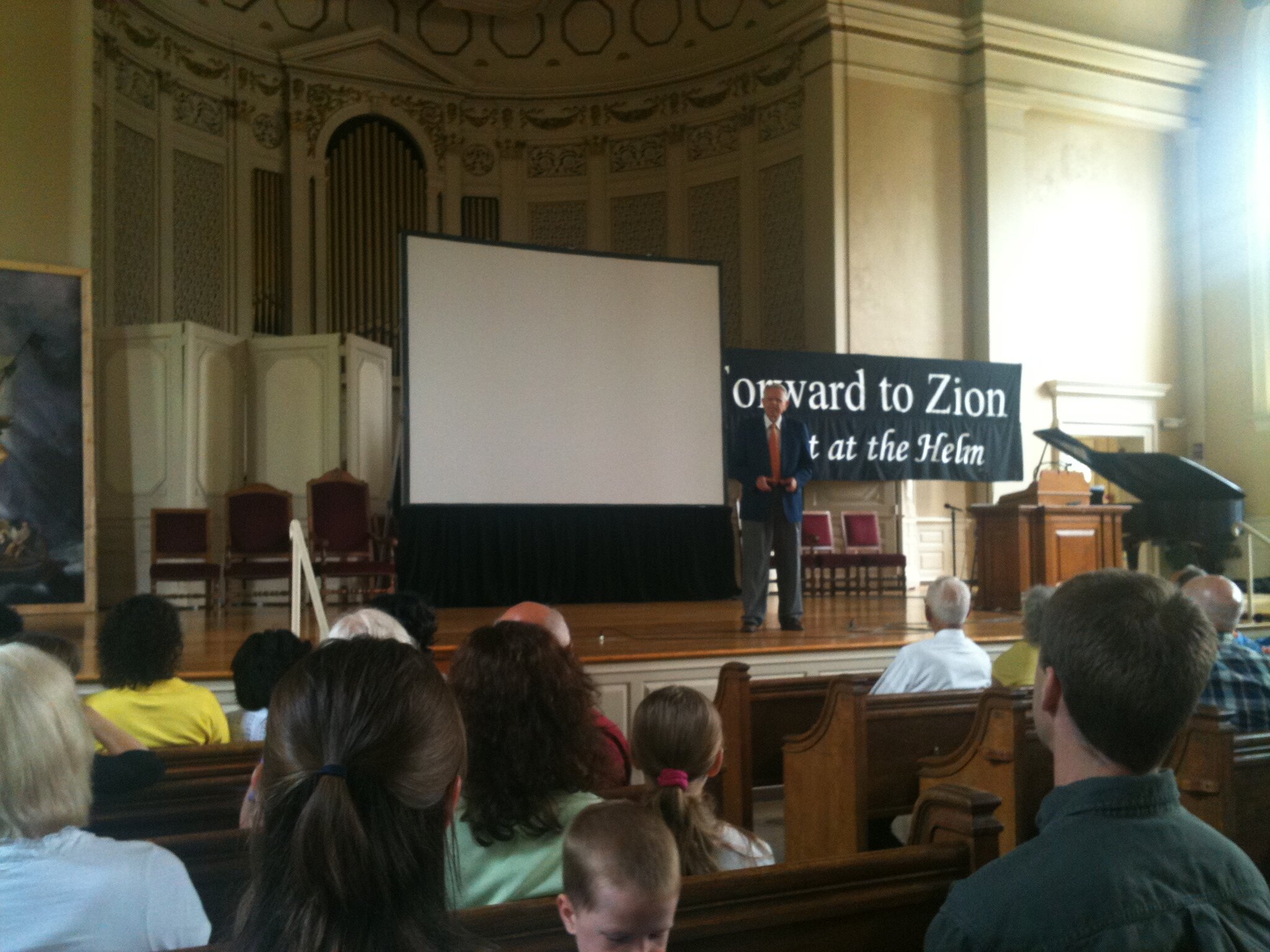 Bill Shea speaking at the 2012 Forward to Zion camp meeting in Ohio.