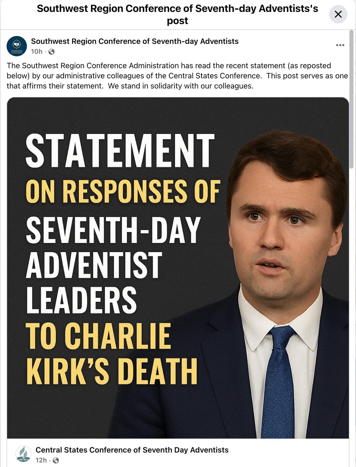 Read moreCentral States Conference Calls Out 3ABN and Amazing Facts for Charlie Kirk Posts